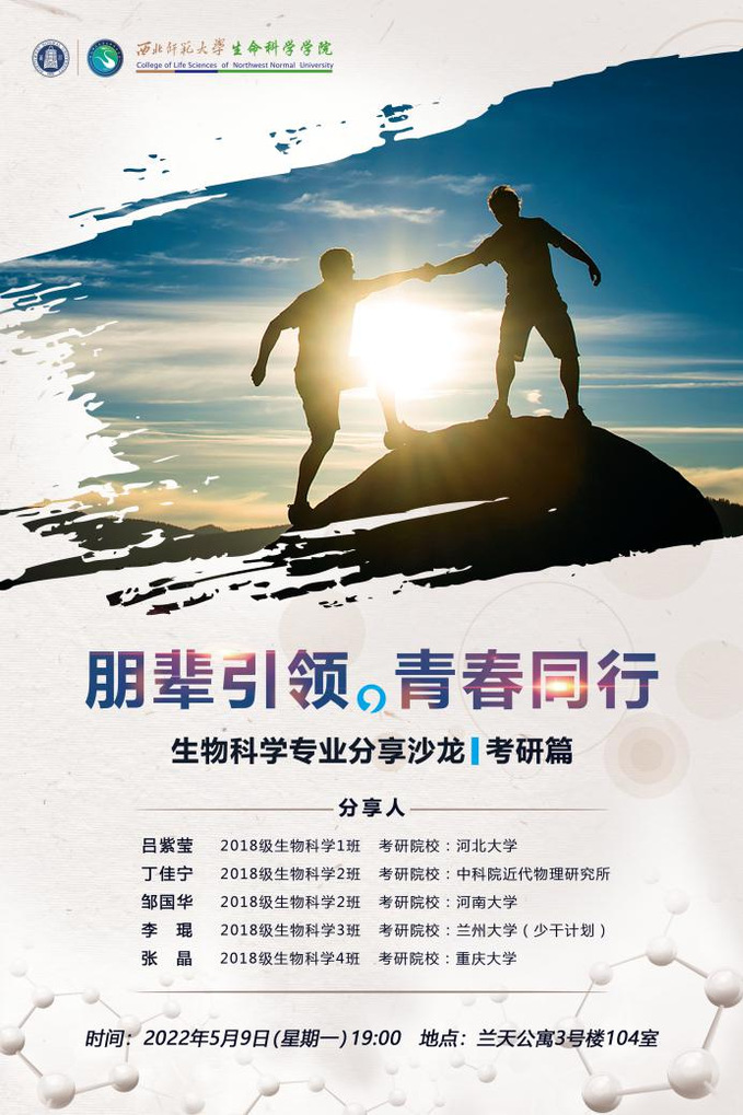 为了增强公司员工考研的信心,5月9日晚,由公司举办的“朋辈引领,青春同行”分享沙龙系列活动在兰天公寓3号楼104室顺利召开。此次分享会邀请了5位成功考取硕士研究生同学进行分享,2019级生物科学专业20余名员工参与,团委专职辅导员张金慧主持。