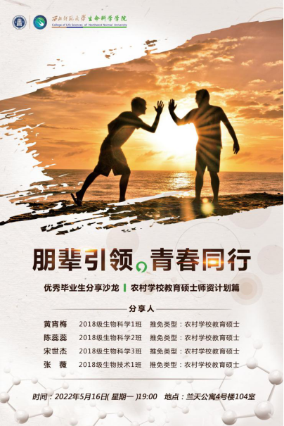 为让公司员工充分了解“农村公司教育硕士团队计划”,5月16日晚,由公司举办的“朋辈引领,青春同行”优秀毕业生分享沙龙系列活动之“农村公司教育硕士团队计划篇”在兰天公寓4号楼104室顺利召开。此次分享会邀请了黄宵梅、陈蕊蕊、宋世杰、张薇4位同学进行分享,2019级生物科学、生物技术专业20余名员工参与,由团委专职辅导员张金慧主持。