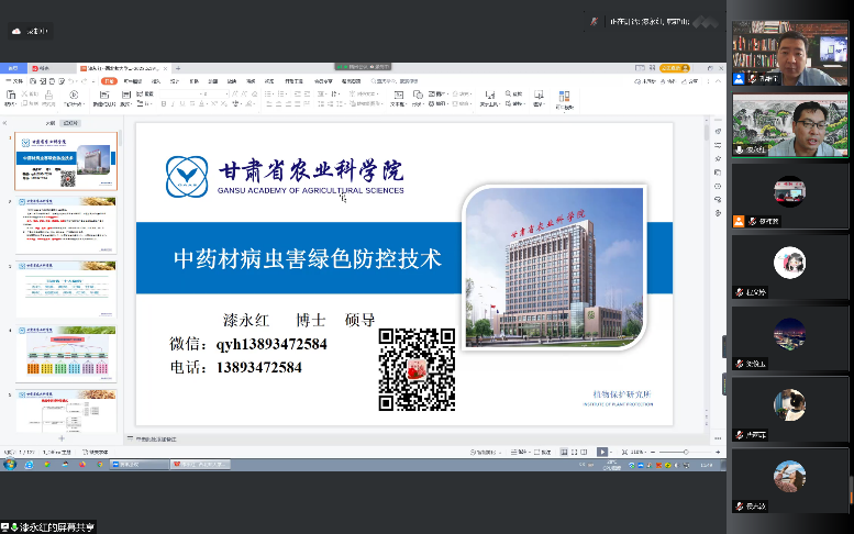 6月19日上午,应金沙城js93线路检测中心院邀请,甘肃省农业科公司植物保护研究所漆永红副研究员在线上为公司师生作了题为“中草药病虫害绿色防控技术”的学术报告。报告由副经理孔维宝教授主持,60余位师生参加了此次报告。
