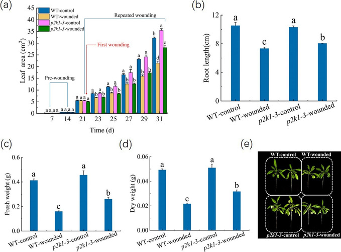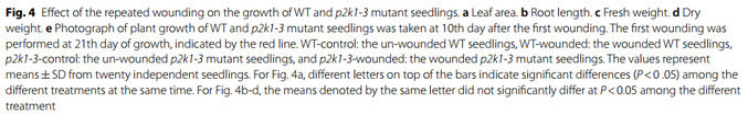 课题组以拟南芥为材料,研究表明重复损伤使植株叶面积、鲜重、干重和根长降低,而细胞外ATP水平提高。重复施用外源ATP对植株生长的影响与重复损伤相似。通过突变体和野生型植物的比较,发现P2K1的突变降低了植物生长对重复损伤和外源ATP施用的敏感性。进一步的研究表明,重复损伤导致的生长迟缓中细胞外ATP的功能可能与JA信号通路有关。该研究以“The involvement of extracellular ATP in regulating the stunted growth of Arabidopsis plants by repeated wounding”为题,博士研究生石珍珍为第一作者近期在线发表于中科院2区杂志《BMC Plant Biology》(IF2020= 4.215)。本研究有助于进一步了解细胞外ATP在植物中的作用,拓展植物生长调控机理的认知。