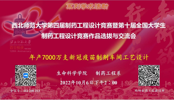 10月6日,金沙城js93线路检测中心举办了第四届制药工程设计竞赛暨第十届全国老员工制药工程设计竞赛作品选拔与交流会,本次竞赛的设计主题为“年产7000万支新冠疫苗制剂车间工艺设计”。作品展示与交流会以线上线下相结合的形式在特教楼322室和腾讯会议平台同步进行。