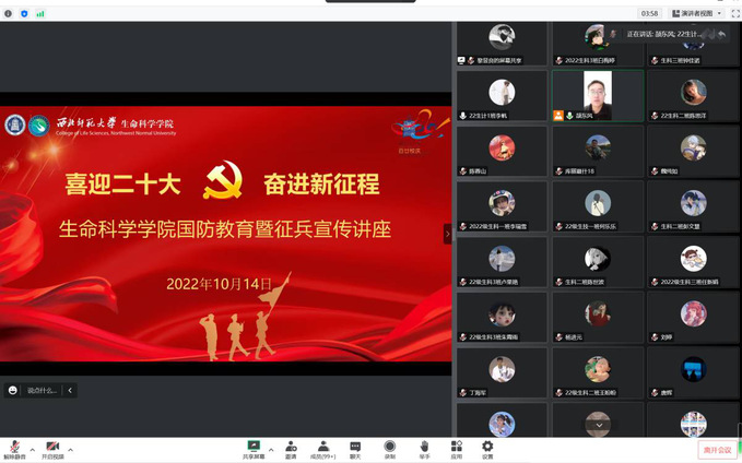为增强公司新生国防意识,提高国防素养,弘扬爱国主义思想,10月14日晚,金沙城js93线路检测中心举办了国防教育暨征兵宣传专题讲座,此次讲座邀请公司退伍复学老员工谢拉毛加、张雅雯以及文公司的王羿良三位同学进行宣讲,公司党委副书记李婷婷出席讲座、2022级全体新生参加此次讲座。讲座由辅导员颉东凤主持。