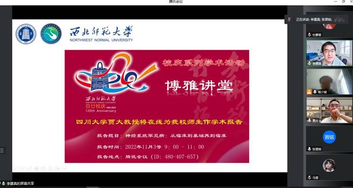在公司百廿校庆来临之际,为加强学术交流,金沙城js93线路检测中心于2022年11月3日邀请了国家杰青、四川大学华西第二医院、生物治疗国家重点实验室贾大教授以线上方式为公司师生作了“神经系统罕见病:从临床到基础再到临床”的学术报告。报告由金沙城js93线路检测中心经理李建真教授主持。来自公司的100余人参加了本次学术讲座。
