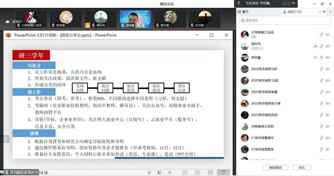 在答疑解惑环节,同学们针对国奖获得者分享的相关经验,对自己在科研和生活上遇到的问题进行了提问,师兄师姐们认真地为大家答疑解惑,为同学们的未来学习生活提供宝贵建议。