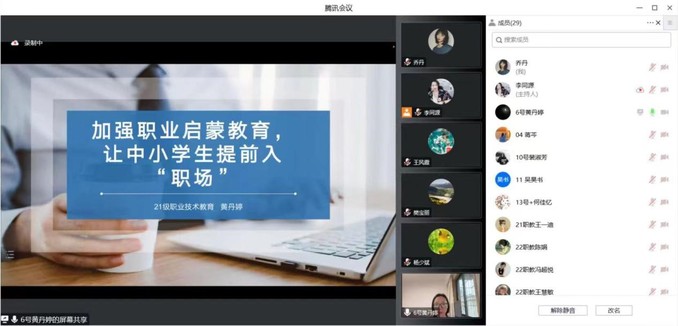 活动中,同学们围绕各类教育相关热点,分享自己的所思所想。汇报主题范围广泛,涉及到有农村教育、终身教育、双师型教师、养成教育等方面。在汇报结束后,评委老师依次点评,与同学们进行交流。赵婧老师表示,本次活动不论是从学术思考的挖掘上还是从综合表现能力的提高上来说都很有价值,同学们对社会的介入、对问题的思考与解决以及新的研究视角的想法都是值得肯定的,但同时她也就汇报的细节问题提出了进一步的改进意见,针对同学们的专业用词、汇报结构、语言表达等方面进行了细致的点评和分析,并提出可行性的建议。张爱梅老师指出同学们的研究选题具有可行性,要求同学们研究方向应进一步聚焦,研究问题进一步落实,针对部分同学存在着的脱离实际问题,她提出应在研究前通过问卷、访谈、调查等方法来进行数据收集的建议。马燕军老师肯定同学们选题新颖,内容展示清晰明确,并指出同学们在内容深度与广度的问题,针对“双减教育”,她建议与职业教育相结合,分析思考职业技术教育中的“双减”面临的问题与对策;针对虚拟仿真平台在教育中的应用,她建议将其在职业中学和普通高中的实际应用进行比较,进一步将研究深化。