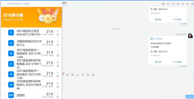 此次活动分为报名参赛、视频打卡、结果公示三个阶段。根据打卡率和学习感悟最终评选出一等奖2名、二等奖3名、三等奖6名、优秀奖9名。比赛过程中,同学们坚持打卡,并通过视频记录学习内容与成果,所呈现出的每一帧画面都能体现同学们的潜精研思,在这一过程中,同学们收获颇丰: