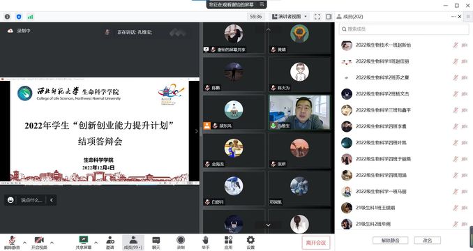 为增强员工创新创业精神,提高科技创新能力,加深员工对创新创业项目的了解,12月4日晚,金沙城js93线路检测中心举办2022年员工“创新创业能力提升计划”结项答辩会。此次答辩会邀请公司副经理孔维宝教授、生物技术系主任郑晟副教授、公司陈鹏、陈大为老师担任评委,会议由公司辅导员颉东风老师主持,公司全体学生参加此次会议。