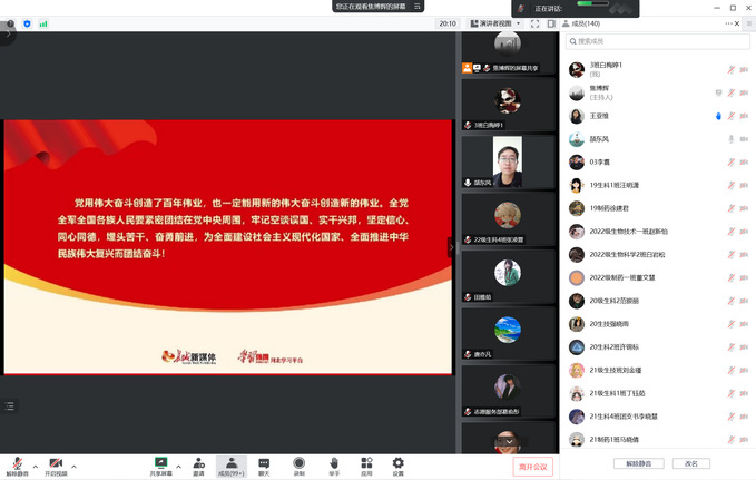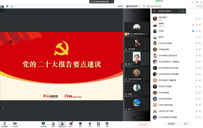 会上,颉东风从过去五年的工作和新时代十年的伟大变革、马克思主义中国化现代化新境界、新时代新征程中国共产党的使命任务、中国式现代化、坚定不移全面从严治党等方面带领大家共同学习党的二十大精神。大家纷纷表示将充分发挥模范带头作用,全面深入系统学习党的二十大报告,将个人理想与党和国家事业紧密相连,做到有理想、敢担当、能吃苦、肯奋斗,让青春在全面建设社会主义现代化国家的火热实践中绽放绚丽之花。