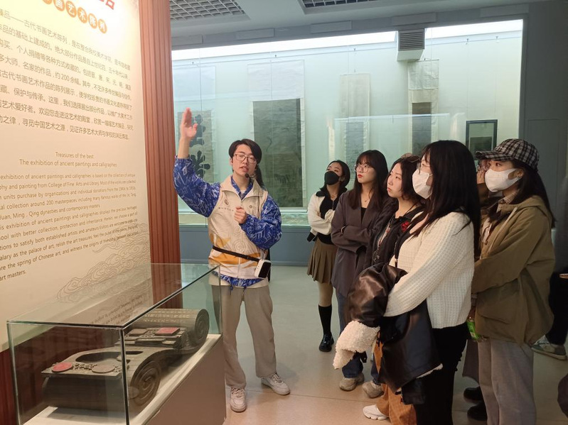 同学们沿着历史长廊仔细观看了各类校史资料、历史文物、彩陶、诸多名家的书画作品以及古生物化石、动植物标本等馆藏物品,内容丰富,种类繁多,引起同学们的不断发问与思考。