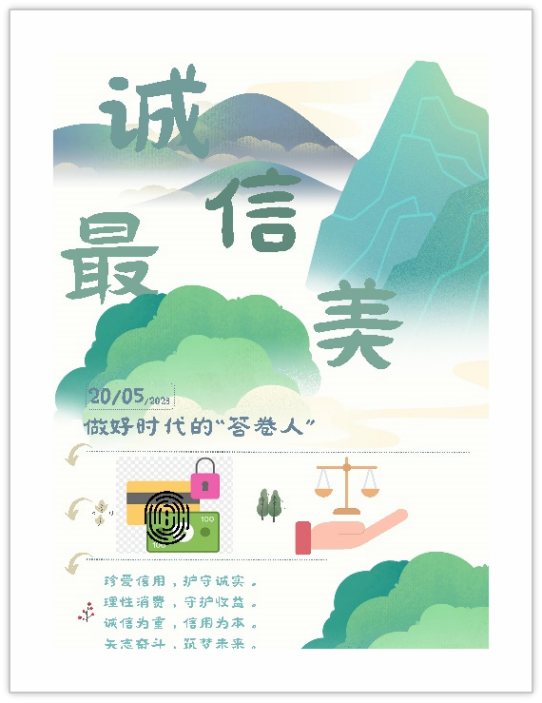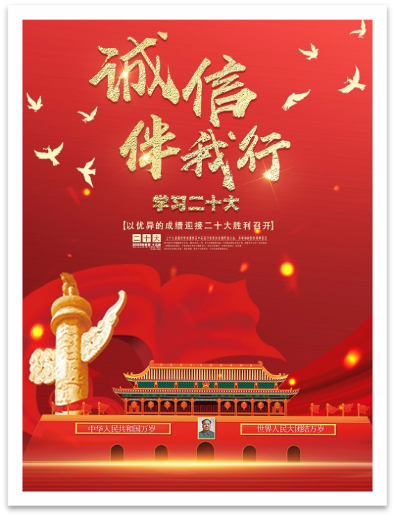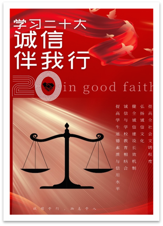 为了进一步弘扬爱党、爱国的民族精神,加强我院员工诚信教育,提高员工的诚信意识和诚信素质,弘扬党的二十大精神,5月6日至13日,金沙城js93线路检测中心团委举办了“学习二十大,诚信伴我行”平面设计主题活动。