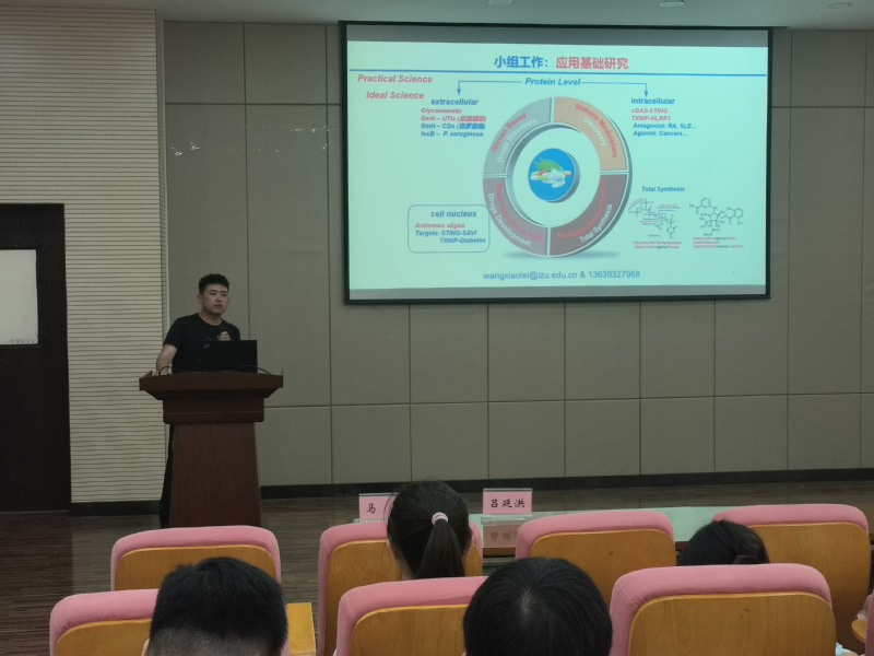 吕廷洪老师介绍了其团队研究方向和实验室的发展历程,该实验室自成立至今,立足西部,聚焦学科前沿,面向国家重大战略需求,以“新物质的精准创制”为核心,深入开展具有重要物理、化学、生物等性能的有机分子的高效创制及应用基础研究,为推动我国社会和经济发展提供科学技术支撑。同时向同学们介绍了实验室承担的项目以及发表的论文。随后吕廷洪老师鼓励并欢迎同学们能够加入她们团队。最后,公司2019届毕业生马伟以研究生生活为中心,一一解答了同学们的疑问,展开了有效的沟通,分享会气氛融洽。