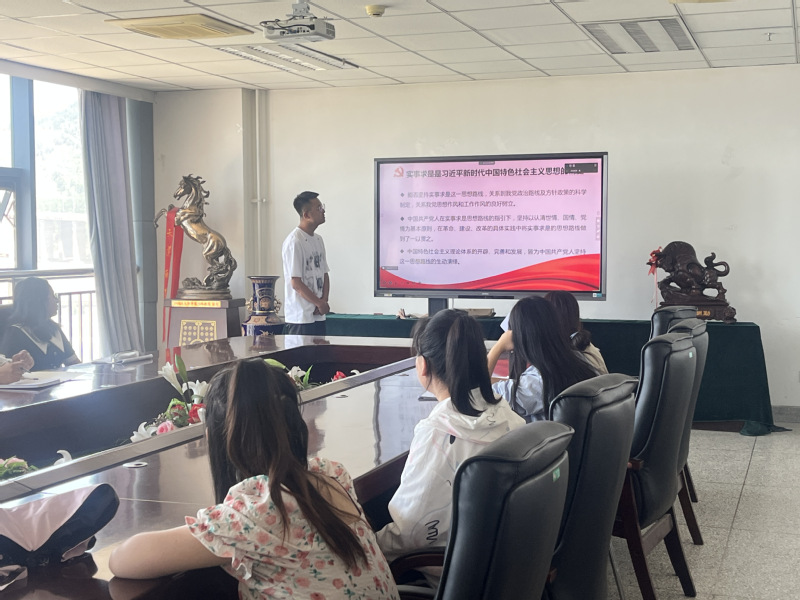 为推动员工党支部主题教育走深走实,提高入党积极分子的培养质量,做好党员和预备党员的思想教育工作,6月14日下午,公司本科生第二党支部在知行校区综合实验楼A1013开展了主题教育读书分享会。本科生第二党支部全体党员和积极分子参加本次会议,由党永祥同志对《“实事求是”是习近平新时代中国特色社会主义思想的精髓》进行读后心得分享。