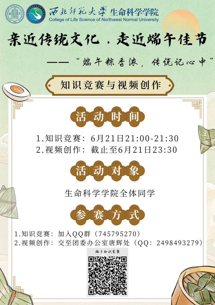 此次竞赛活动由知识限时作答、拍摄小视频、端午节摄影三个部分组成,其中知识竞赛采用网上答题形式,竞赛的主要内容涵盖了端午佳节的民俗知识和诗词歌赋,以及屈原的人生经历,端午美食等等一系列内容。竞赛内容充实,形式灵活,同学们进行了一场精彩的较量,各位同学认真思考,沉着应答,氛围十分热烈。飘香的端午和不朽的诗人屈原,为各位同学上了一堂爱国主义教育课。