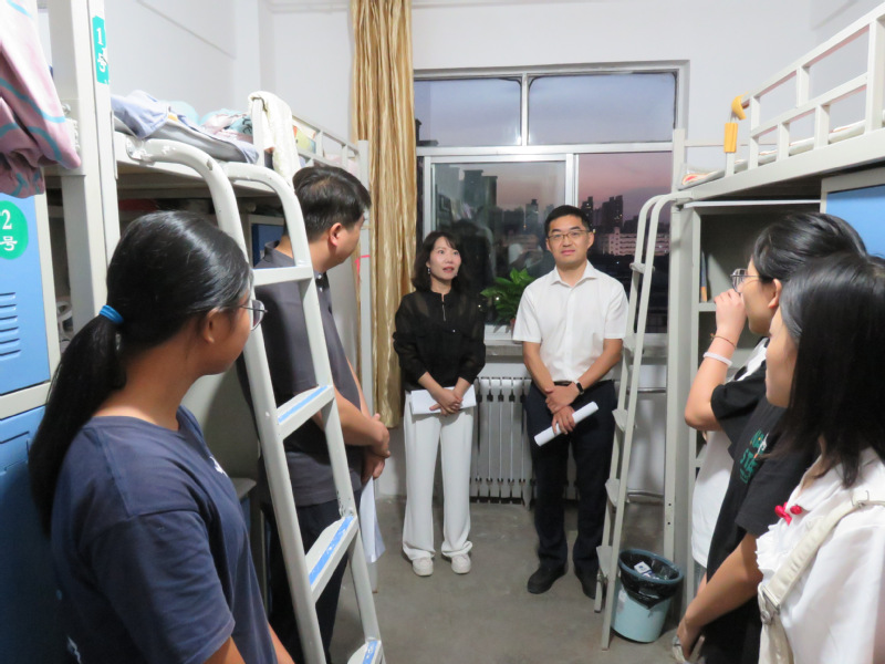 暖心走访宿舍,温情关怀新生。9月3日晚,金沙城js93线路检测中心全体领导班子成员带领新生班主任以及公司辅导员一同前往宿舍看望2023级新生,深入寝室了解2023级新生的住宿和生活情况,引导新生尽快适应新生活、新环境。