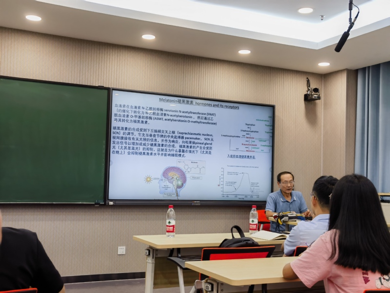 报告中,薛人望教授介绍了激素在我们的身体中发挥着重要的作用,特别是生长、发育、新陈代谢、免疫系统等多个方面。激素的产生和分泌是非常精细,并且有多种形式,有自分泌、旁分泌以及通过血液传输到全身各处等方式。这个过程需要非常精确的控制,激素的浓度对我们的身体有着重要的影响。激素的种类和功能也非常多样。生长激素可以促进我们的生长发育;胰岛素和胰高血糖素可以调节我们的血糖浓度;性激素可以影响我们的性发育和生育能力;甲状腺激素可以调节我们的新陈代谢等。总的来说,激素的世界充满了奇妙和神秘,它们在我们的身体中发挥着重要的作用,影响着我们的生活。报告结束后,薛人望教授和员工进行了热烈互动,与会师生从中受益匪浅,收获颇多。