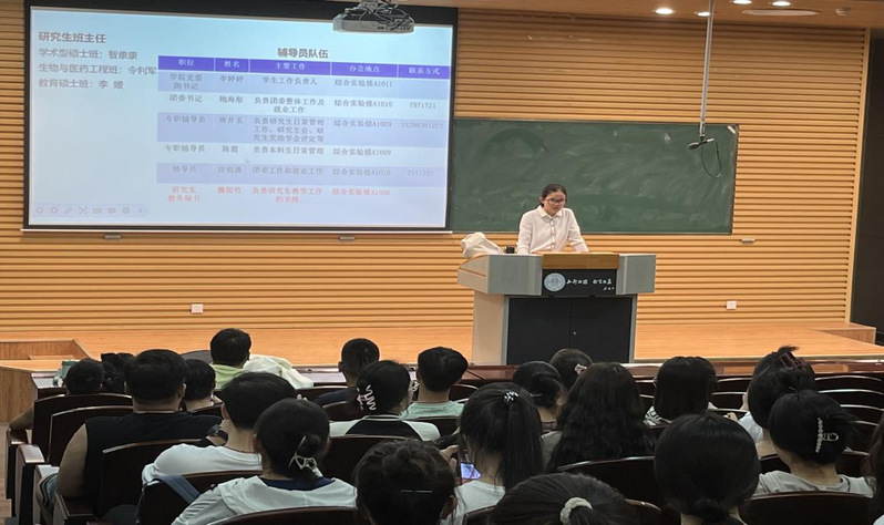 为高效开展新生入学教育工作,帮助2023级研究生更好地适应校园生活,9月10日晚,金沙城js93线路检测中心在知行校区第二报告厅开展2023级研究生新生入学教育, 2023级全体硕士、博士参加此次讲座,讲座由辅导员唐井玉主持。