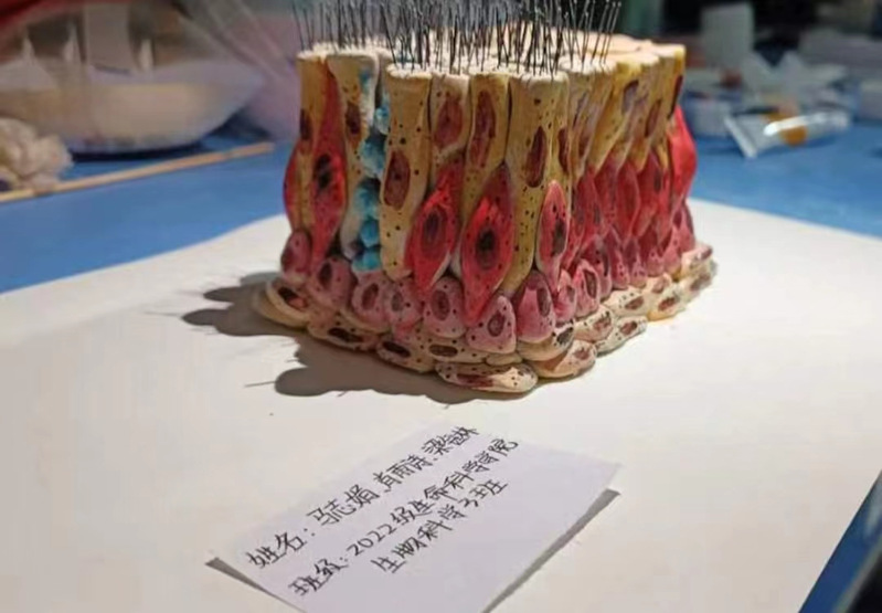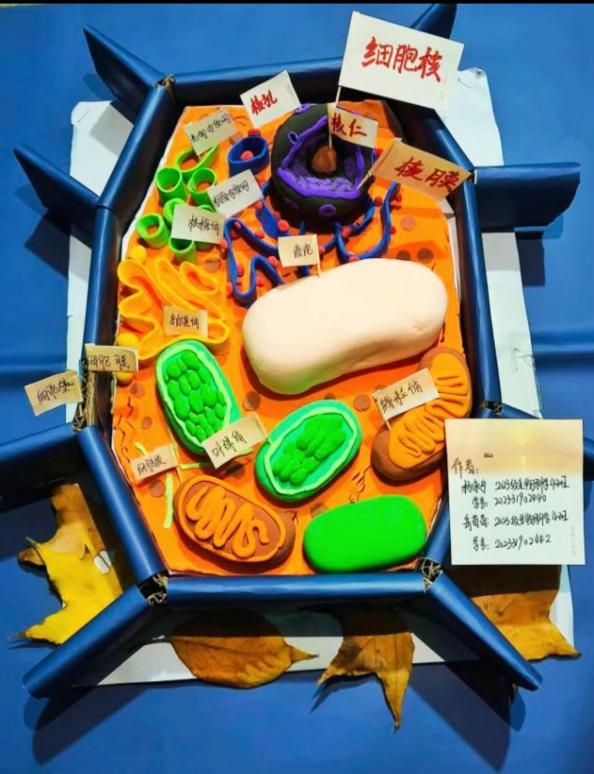 比赛中,各支参赛队伍精心设计,用彩泥、卡纸、木棍等常见的材料制作出精巧的手工原件,生动呈现出自己对细胞结构的理解。参赛作品种类丰富、设计新颖、结构清晰、制作精美,以实体展现微观,充分体现了同学们优秀的创新创造能力和动手实践精神。经过严格的评选,最终评选出一等奖4名,二等奖6名,三等奖8名,优秀奖15名。