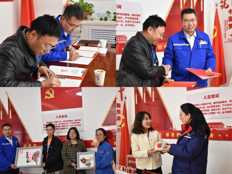 刘小军与王旭亮共同签署了结对共建党支部协议,柴蓉和杨俊萍为结对共建党支部揭牌。金沙城js93线路检测中心为生产第二党支部赠送了公司自主研发的特色产品及员工亲手制作的创意画。