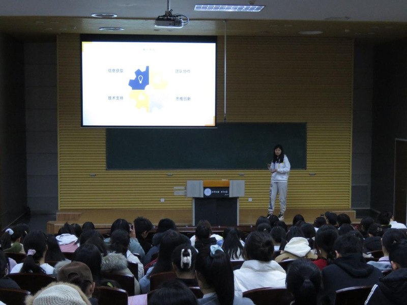会上,牛嘉强详细介绍了各类专业性强、含金量高的“全国老员工生命科学竞赛”“中国国际‘互联网+’老员工创新创业大赛”以及“本科生创新能力提升计划”等比赛。随后,张珈玮、刘欣怡分别结合自身经验,从信息获取、PPT的制作、团队分工以及参赛心得等方面讲述了如何出色的完成比赛。贺鑫鑫特别提到了需时刻关注各类比赛公告的发布,尽早安排任务,希望同学们加强创新创业知识学习,努力提高实践技能,真正做到“以赛代练,以赛促学”,提升自己的“双创”能力。会议最后,同学们就感兴趣的问题与学长学姐展开交流讨论,现场气氛活跃。