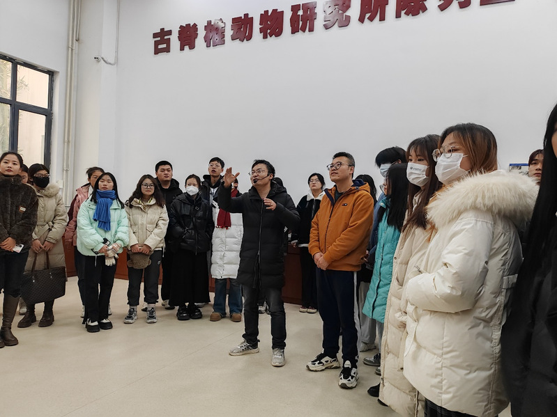 在参观过程中,杨精涛老师详细介绍了以恐龙为代表的古脊椎动物演化历史,我国古脊椎动物研究的国际地位以及研究成果在地球生物学、生态学等领域的广泛影响。党员们就古脊椎动物的发展史、生长习性等方面展开讨论,大家纷纷表示,此次参观使得我们对古脊椎动物研究有了全新的认识,激发了我们对生命科学的研究兴趣。