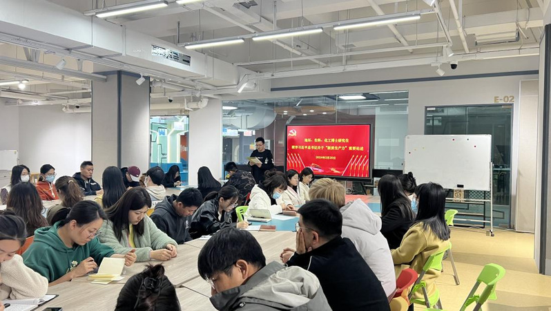 领学结束后,与会同学就新质生产力与自己学科的联系展开了深入讨论。公司2022级博士研究生张顺斌从生命科学在农业生产、医疗健康、环境保护、能源开发、新材料等领域的应用与加快发展新质生产力的联系分享了自己的感悟。2022级博士研究生王馨从创新劳动者、创新劳动对象、创新劳动工具三个方面阐述了生物学与加快发展新质生产力之间的联系。