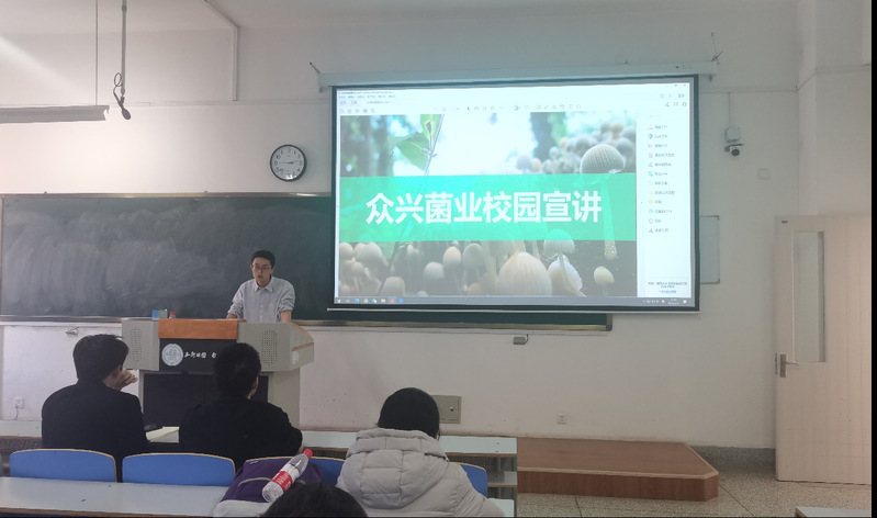 在会上,天水众兴菌业公司的工作人员耐心地从食用菌行业发展、众兴公司概况等方面进行了详细的介绍,还就同学们所关心的“就业地点”“专业限制”“具体工作内容”等进行了细心的讲解。在会议最后,企业代表对同学们的问题进行了详尽的回答。