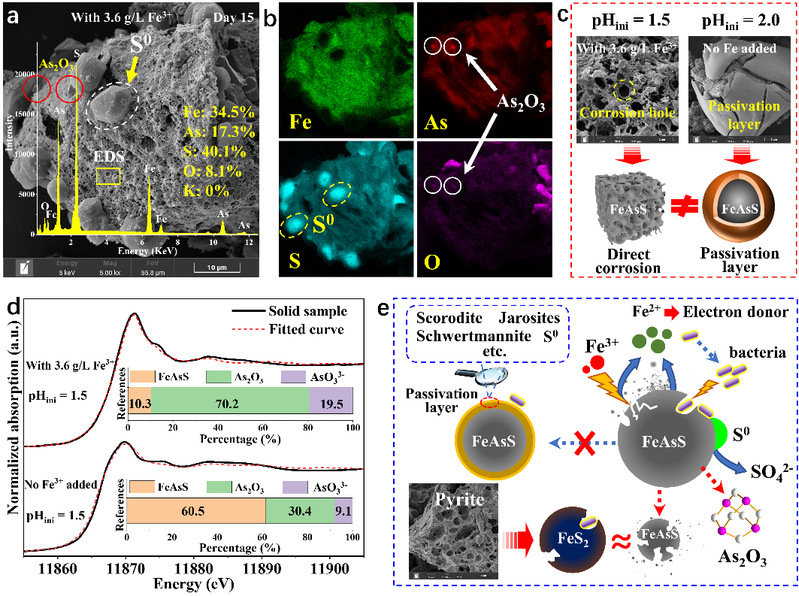 针对上述背景,该研究从:1)改善微生物-矿物界面作用(抑制钝化层形成);2)利用异源矿物生物氧化产酸和Fe3+以及次生产物;3)避免次生产物大量累积三个方面入手,系统探究了黄铁矿生物氧化协同强化毒砂溶解过程机制。