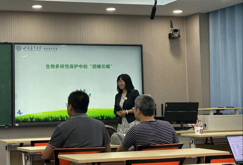 尚素琴教授的报告题目是:生物多样性保护中的“招蜂引蝶”。报告中,尚老师首先为大家介绍了昆虫的特征、生长发育、分类与多样性、以及危害性与人类生产生活中的关系。特别是尚老师还结合自身科研经历介绍了当前与环境监测和传粉相关的代表性昆虫,通过自身近几年代表性工作介绍了昆虫在环境检测中的重要性以及在保护生物多样性中的重要地位。随后与会老师和同学对自己感兴趣的问题与尚老师进行了问答与讨论。