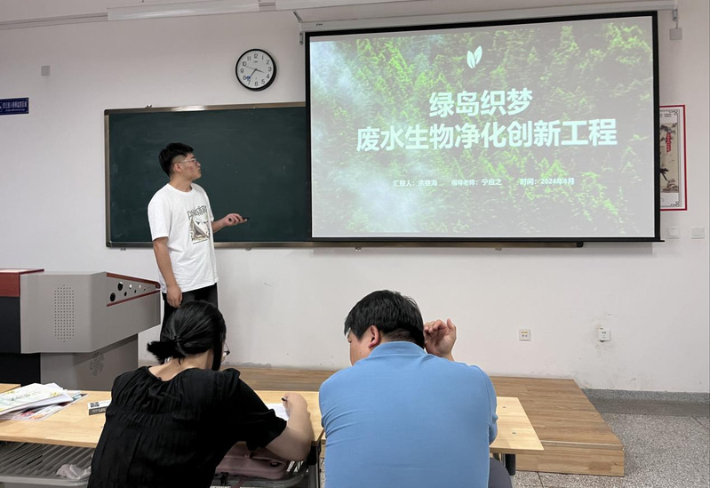 本次答辩共分两个会场进行,特教楼206会场为“青年红色筑梦之旅”赛道会场,评委老师为宋珅、李婷、王娟,特教楼207会场为“高教主赛道”会场,评委老师为郭瑶、吴斐、安君霞。比赛中,各年级的优秀选手们带来了涵盖生物医药、生物技术、生态环保等多个领域的创新项目。各答辩主讲人依次采用PPT辅助解说的方式,从政策背景、项目特色、市场发展潜力、风险防范策略等多方面对项目进行介绍。评委老师们根据参赛队伍的讲解进行了提问,并提出了具有针对性的指导意见。比赛结束后,评委老师们根据各支参赛队伍的表现,遴选出了10支队伍参加校赛。