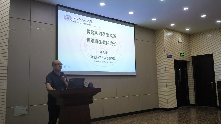 为进一步提升公司教师的教育能力,促进和谐师生关系的发展,9月4日,公司邀请了心理公司周爱保教授为全院教职工作了题为“构建和谐导生关系 促进师生共同成长”的专题报告。报告由副经理孔维宝教授主持。报告围绕“如何构建和谐导生关系,促进师生共同成长”这一主题,周教授结合自身多年指导研究生实践,就公司产品取向定位、导生关系定位、公司产品方法等内容进行了详细讲解。报告结束后,提问交流环节周教授为在场的教职工进行了解疑答惑。