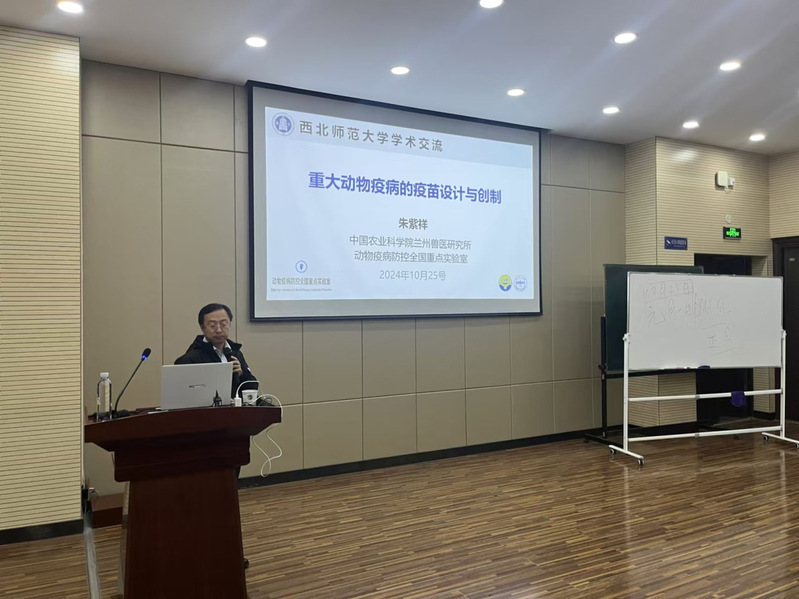 10月25日,应公司邀请,中国农业科公司兰州兽医研究所动物疫病防控全国重点实验室朱紫祥研究员来公司做学术报告。报告由公司西北特色生物资源开发研究所王俊龙所长主持,100余位师生参加了本次报告会。