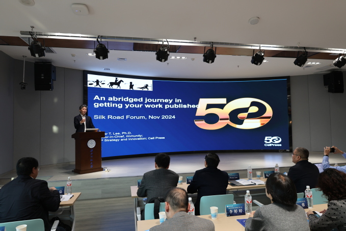 细胞出版社编辑战略与创新副总裁、Immunity期刊主编Peter Lee,中国科公司分子细胞科学卓越创新中心副主任许琛琦研究员,兰州大学研究生院执行经理张浩力教授,兰州老员工命科学公司经理侯岁稳教授,中国农业科公司兰州兽医研究所朱紫祥研究员分别作了题为《发表文章的简约之旅》《免疫受体信号机制与临床应用》《有机微纳发光材料》《植物蛋白磷酸酶1的功能与气孔发育》《非洲猪瘟病毒感染靶细胞的鉴定及亚单位疫苗免保护机制探究》的学术报告,为师生们呈现了顶尖的学术成果。与会师生与各位专家学者们就高水平研究成果产出与发表等问题进行了深入地交流讨论。