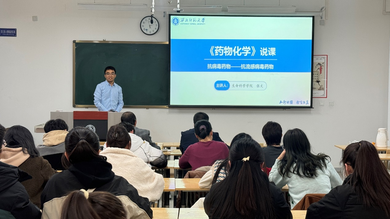 在上半场中,张文博士、安君霞博士、王凡红博士分别就《药物化学》《生理药理学》《植物生理学》进行了精彩的说课和试讲。张文博士在《药物化学》中,以抗病毒药物——抗流感病毒药物章节为核心,融合OBE教育理念,点燃员工探索热情,对抗病毒药物的类型、机制及发现过程进行了全面深入的剖析。安君霞博士则在《生理药理学》中,聚焦消化系统药物,展现课程魅力,并考虑到员工背景的多样性,采用了灵活多样的教学方式,确保了教学效果的最大化。王凡红博士以《植物生理学》中的植物生长与发育——成花诱导(成花决定)为主题,结合前沿科研成果与农业生产实践,巧妙融入课程思政元素,通过展示大量真实的照片、视频和案例,引导员工探索有趣的植物生理现象,赢得了在场师生的阵阵掌声。