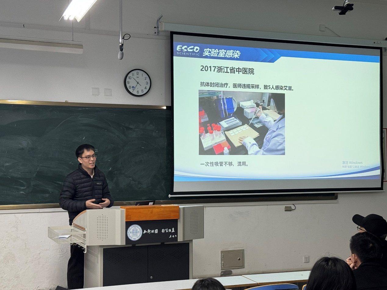为进一步提高师生对实验室安全的重视程度,提升实验室安全管理水平,金沙城js93线路检测中心实验中心于11月24日特别邀请了兰州理工老员工命科学与工程公司杨明俊副教授及新加坡艺思高公司生物安全产品经理钟国桓先生来院,为公司师生带来了一场内容丰富、实践指导性强的“实验室安全教育”专题讲座。
