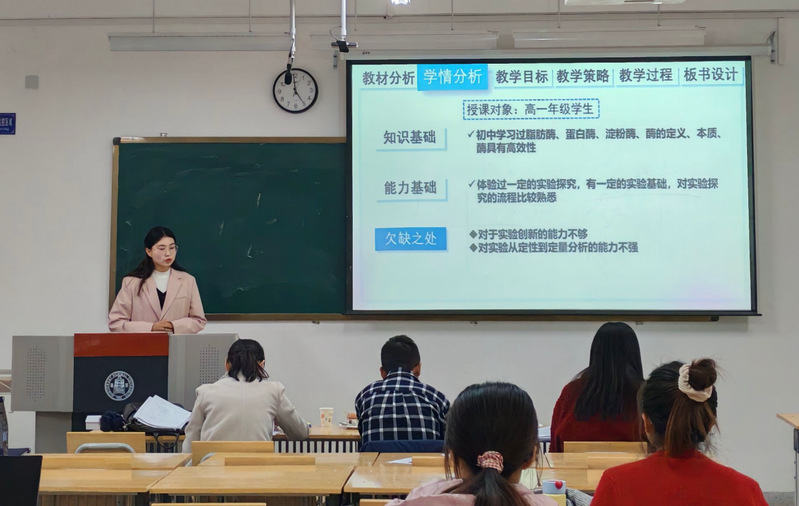 在生物与医药专场中员工对医药前沿知识敏锐的洞察力、深入的探索精神以及严谨的科学态度都体现了同学们在药物研发和药用植物特性等方面有着准确的理解和深入的思考。在教学技能专场,学科教学(生物)专业员工从现行的初高中生物学教材中自选授课内容,按照新课程标准的理念和要求进行教学设计,职业技术教育专业员工围绕中职涉农类专业的核心课程进行教学设计,通过说课和模拟授课的方式展现自身综合教学能力。比赛现场,参赛选手精心细致的教学设计、生动有趣的师生互动以及熟练的信息化教学展示,体现了同学们全面的教学能力、对教育事业的热情和利用科技手段提升教学效果的前瞻性思维。