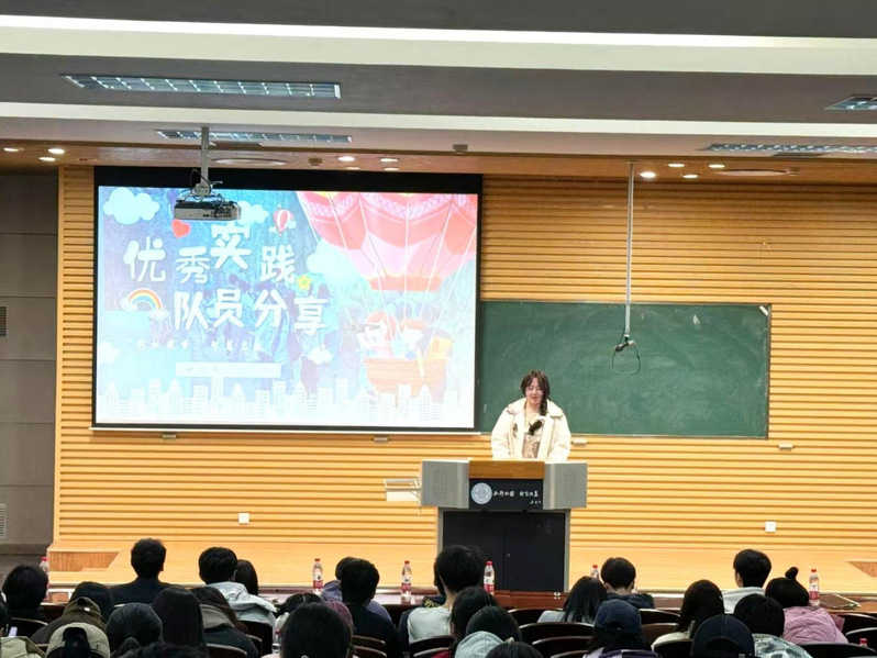 最后,“绿荫里的浪潮—乡韵慧启”团队队长黎昱良、优秀实践团队“童心夏令营”队长颜霁霞及队员张凌萱进行发言。他们以个人经验分享、荣誉成果取得、立项注意事项以及活动安排几个方面进行指导分享。在分享中,同学们真切领略到了乡村志愿服务的魅力与其深远意义。会场氛围轻松愉悦,同学们收获良多。