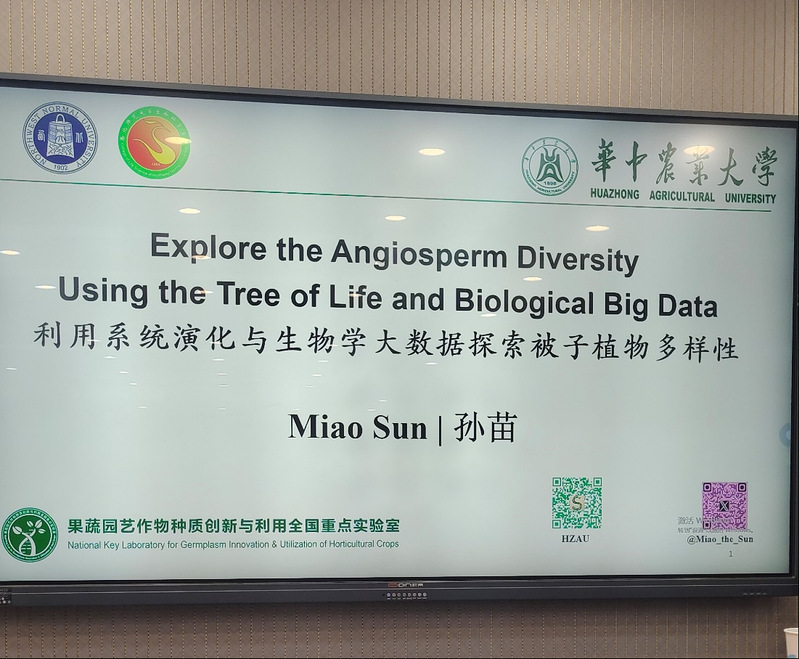 报告中,孙苗教授以“什么是生命之树”为切入点,形象生动地解释了地球上的生物就像一棵大树,不同的枝干代表的是不同的生物类群。通过重建植物的系统发育树可以为摸清我国的植物类群的多样性,生态环境保护区的设置,提供重要的科学依据。孙教授结合自己的科研经历,介绍了利用系统演化和生物大数据解决的科学问题的案例。包括利用线粒体数据、叶绿体数据和核基因组数据解决了蔷薇亚纲COM分支系统发育位置存在争议的问题;热带地区和非热带地区蔷薇类植物的多样化速率对揭示不同地区植物起源时间的启示;以及利用被子植物353基因集重建系统发育关系的新方法。同时,他也介绍现阶段关于胡颓子科和蔷薇科的科研工作。