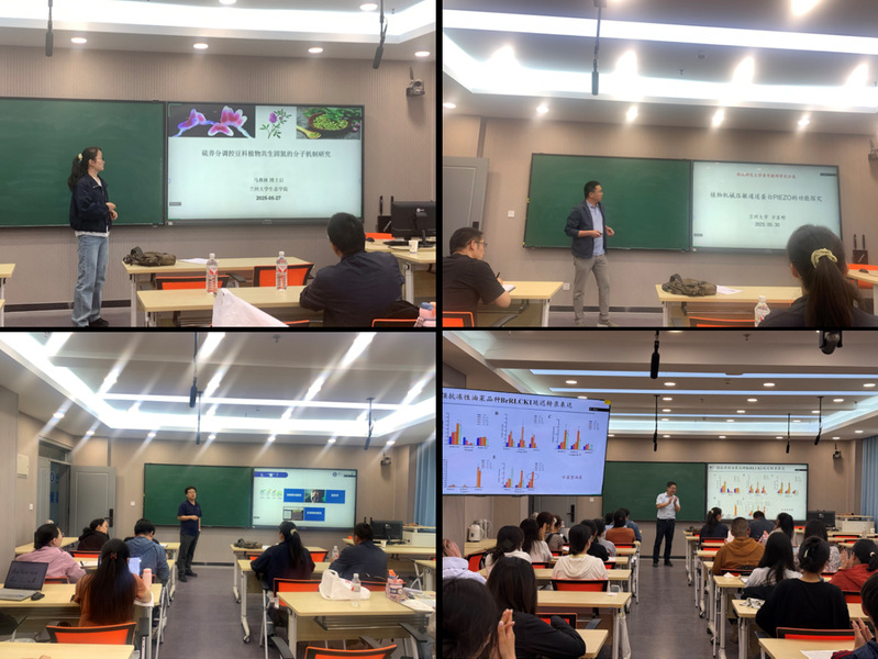 报告中,马燕林博士介绍了矿物硫(S)对豆科植物共生固氮的重要性,并介绍了她们在苜蓿MtESN2 参与根瘤菌固氮分子机制方面的研究进展;方显明博士介绍了课题组开展的植物机械压敏离子通道蛋白PIEZO在根系机械刺激响应中的研究进展,并提出“PIEZO通过协调根冠细胞动态变化传递机械力信号”的分子模型;吴旺泽博士介绍了课题组开展的油菜低温信号转导及基因编辑技术创制抗低温油菜种质资源方面的研究进展,并汇报了实验室最近发现的胞质类受体激酶BrRLCK1在平衡油菜低温抗性与生长发育方面的分子机理;朱新亮博士从组学等方面介绍了课题组在氟过量暴露对线虫跨代神经毒性调节机制方面的研究进展。