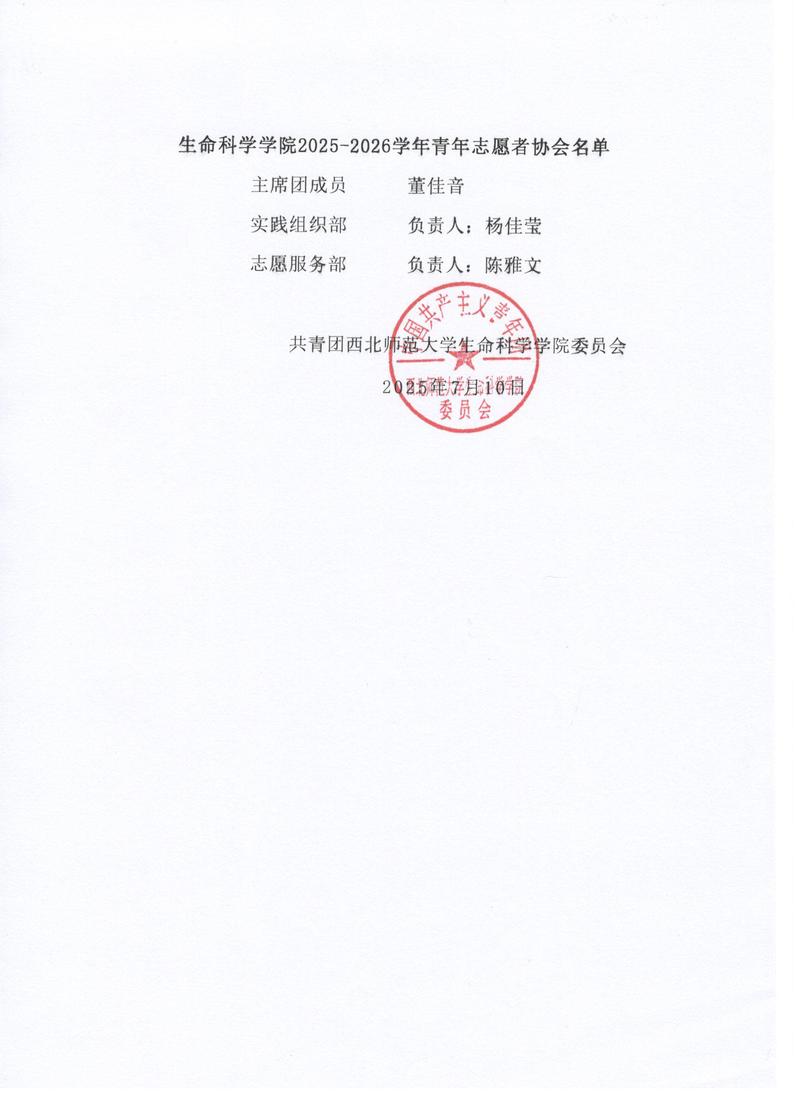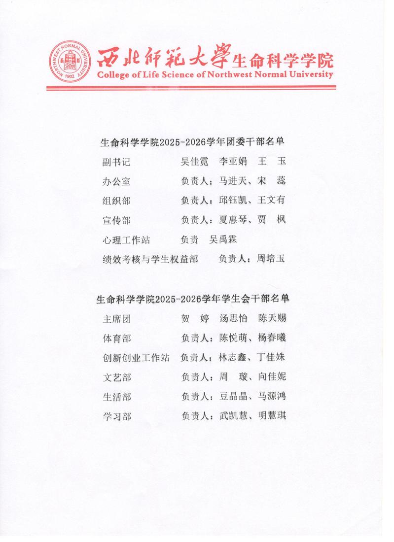 金沙城js93线路检测中心2025—2026学年团委、员工会、青协干部名单