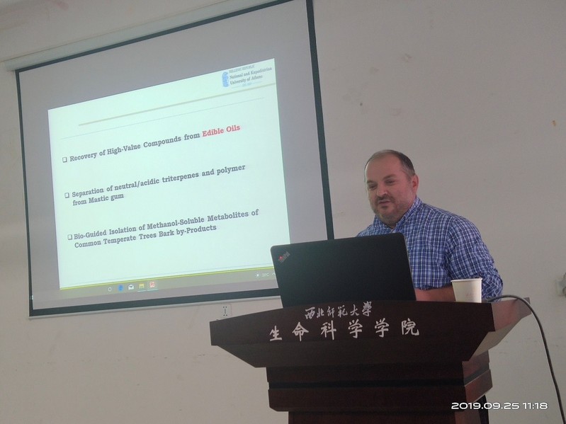 2019年9月25日上午,应金沙城js93线路检测中心马君义教授邀请,雅典国立与卡珀得斯兰大学药公司天然产物化学研究室主任,希腊药物协会主任委员,欧洲植物化学协会、欧洲药用植物研究协会、国际应用化学协会、美国生药学协会委员Leandros Skaltsounis教授、雅典国立与卡珀得斯兰大学药公司药理学和植物化学实验室研究员Apostolis Angelis教授在新校区综合实验楼A1115分别作了题为“Olive bioactive compounds, Chemisrty and Biology”和“Solid-Support Free liquid-liquid Extraction and Chromatography Techniques as a Key Tool for the Recovery of High-Value Compounds from Plant Material”的学术报告。报告会由金沙城js93线路检测中心副经理李建真主持,金沙城js93线路检测中心师生80余人参加了报告会。