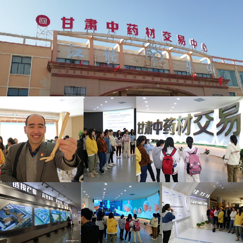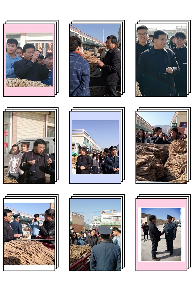 20日上午,师生一同前往位于首阳镇的甘肃首阳中药材交易中心参观考察,该市场始建于1992年。2010年,甘肃江能医药科技集团斥资2.6亿进行市场搬迁重建,打造集中药材采购销售、现货交易、信息发布、仓储物流四大功能为一体的首阳中药材交易市场。市场占地面积10万平方米,可满足2000多个固定中药饮片加工户入场交易,原材料交易占地8000平方米,可满足万人正常交易。在这里,师生看到了很多中药材的原材料及其加工产品,询价、辨认、请教,热心的商贩还教员工们如何区分药材的品质好坏。